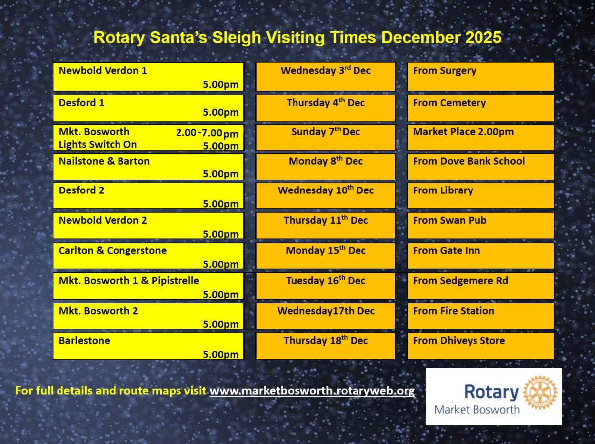 Santa Claus does get about quite a lot at this time of the year but our Rotary Club has been told that you might also spot him at the places shown below.
