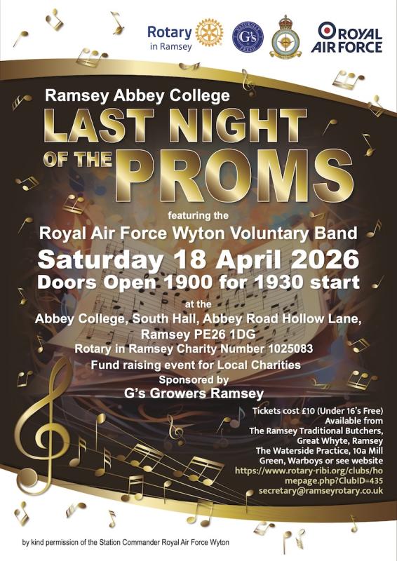 Tickets remain priced at £10 (Under 16's are FREE) and will be available from any Rotary in Ramsey member; Ramsey Traditional Butchers, Great Whyte, Ramsey and The Waterside Practice, 10a Mill Green, Warboys.