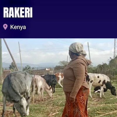 We are also supporting Rakeri who is 58 years old and lives on the rural outskirts of Narok in Kenya. A dedicated mother of three, she supports her family through small-scale livestock farming, mainly from milk sales.