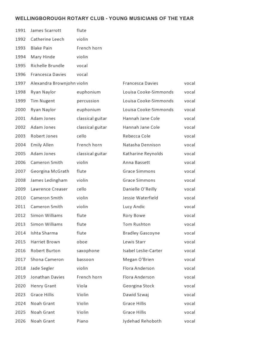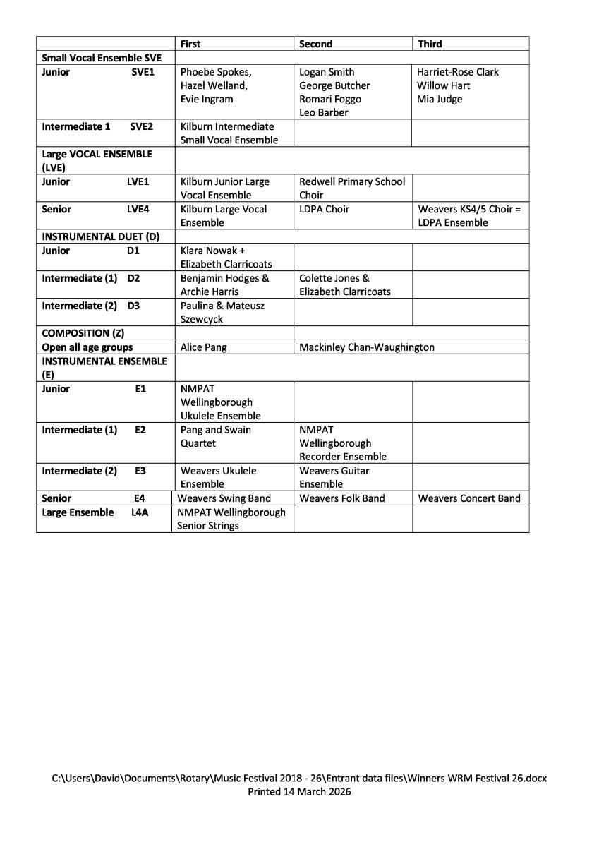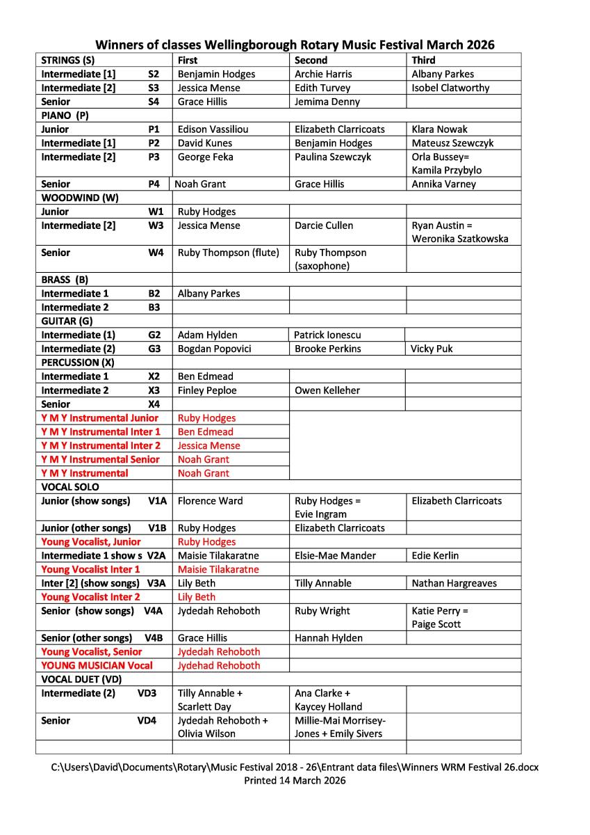 Winners of classes Wellingborough Rotary Music Festival March 2025
