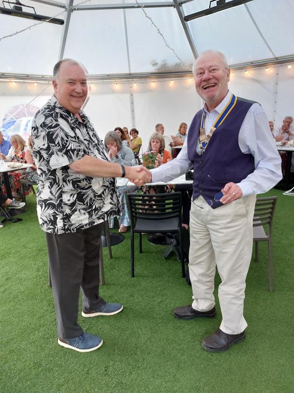 President Geoff Sadler has just been handed the Chain of Office from Immediate Past President Les Chant. Lynne Dunham starts her role as President Elect.