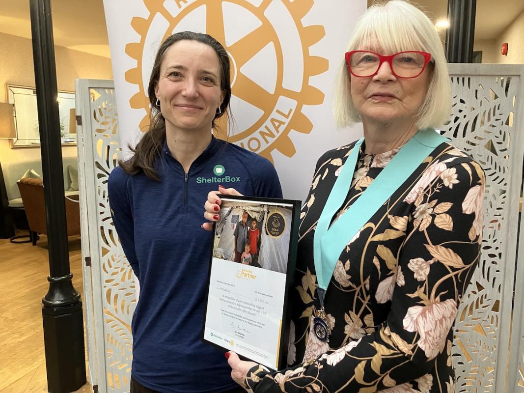 Rotary Cambridge received a Platinum Award in 2022-3 in recognition of donations to Shelterbox of over £10,000 and a Bronze Award (over £2,000) for 2023-4