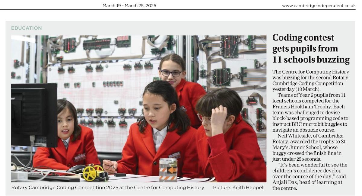 The Centre for Computing History was buzzing for the second Rotary Cambridge Coding Competition [on]18 March.