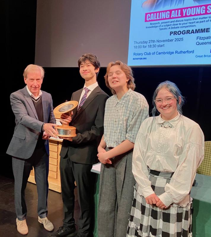Rutherford held its annual Sixth Form Debating Competion Youth Speaks on 27 November 2025. Again held in the excellent Fitzpatrick Hall at Queens' College. Teams from the Perse, The Oakes (Netherhall) and Kings Ely were back, so were a team from the 2024 winners The Leys, hoping for a repeat win. The dark horses, new entrants from last year, were Chesterton Community College but sadly, Impington Village College withdrew at the last minute leaving only five contesting teams.