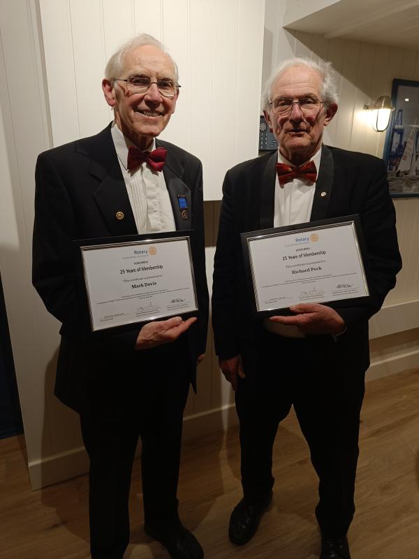 And at the end of the evening, Rotarians Mark Davis and Richard Peck (pictured) were presented with long-service awards recognising 25 years of service to the club and community - well done Mark and Richard!