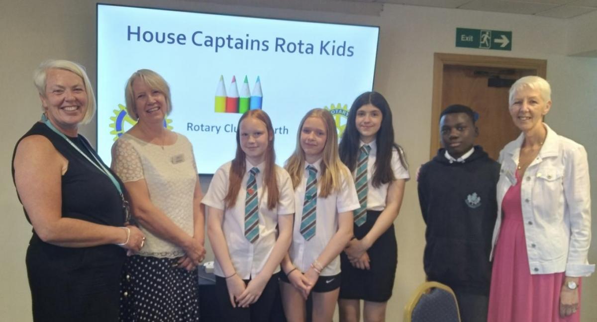 The pupils, all House Captains and members of the school’s RotaKids Club, gave a very confident and enthusiastic presentation using PowerPoint. Taking it in turns to speak, they spoke enthusiastically about the school ethos, and outlined how they were chosen to become house captains and what their role involved. This focused at all times on the values of achievement, compassion, opportunity, resilience and nurture. They had also created a video about their school and played that for us too.