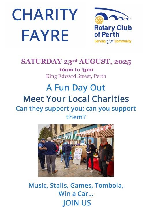 The Rotary Club of Perth had organised this Fayre on behalf of local charities hosting around 20 free of charge stalls to local charities so that they could increase awareness of their work, recruit volunteers and raise vital funds, often through fun, hands-on activities.The club Rotarians were out in force manning the stalls. There was the return of the popular "Roll the Dice" for an opportunity to “Win a Car”.