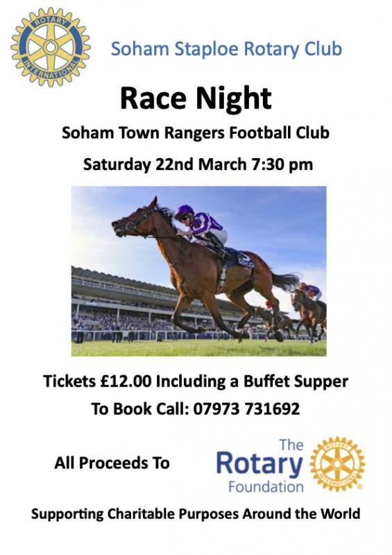 more A successful Race Night was staged by the Foundation and International committee on Saturday 19th March at the Soham Rangers Football Club - £894.06 was raised - Well done everyone !