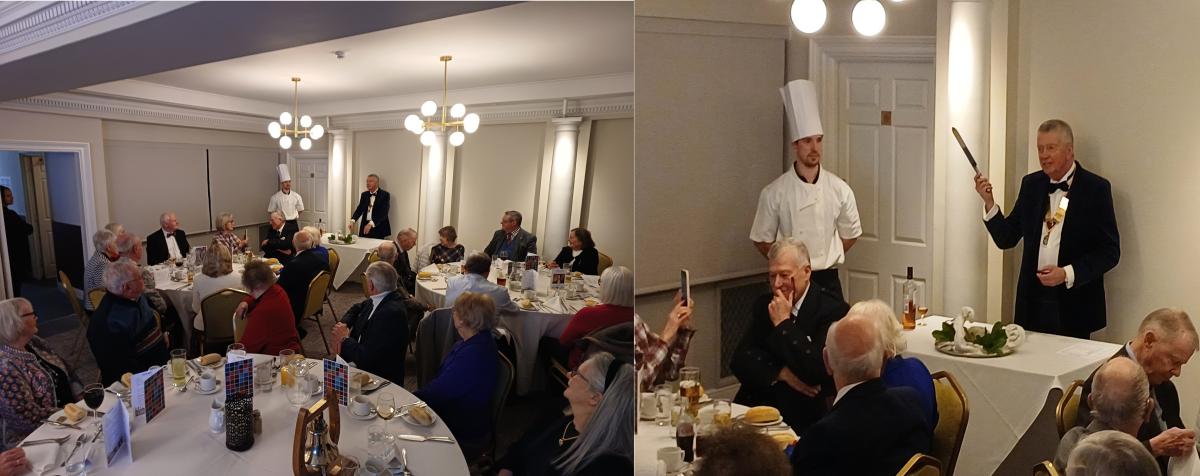 On 28 January we held another successful Burns Night at The Maidenhead Golf club. The evening started with the Selkirk Grace by President Graham followed by his address to the Haggis as shown in the photos. Lots of fun with an excellent meal.