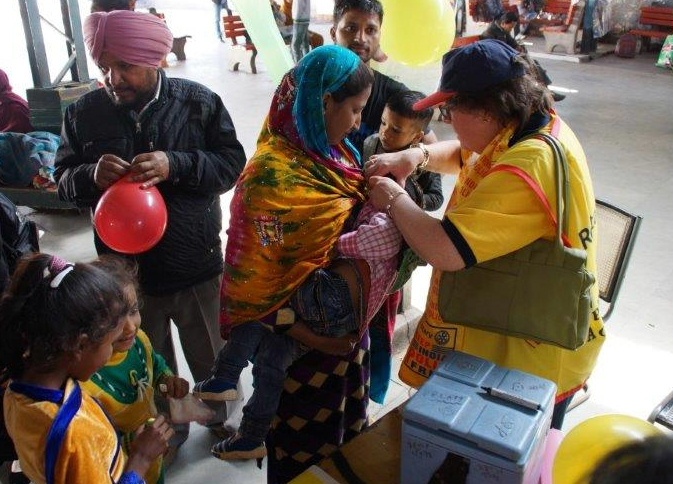Two of our members, Jenny Owen and Manjit Shihn travelled to India in 2015 with the intention of supporting the National Immunisation Day and helping to immunise thousands of children. They joined a group of 106 volunteers from accross Great Britain and Ireland - the largest to have ever travelled - and met up with other volunteers from all over the world, including Japan, USA, Belgium and Luxemburg. Jenny travelled as a volunteer to India for the third time.