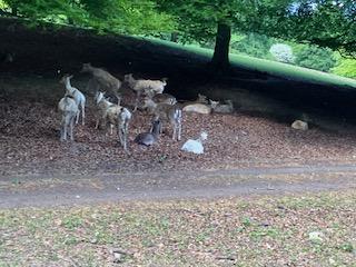The following morning it was an early (?) start to meet at Fawley Hill near Henley to explore the collection of trains & railway memorabilia collected by Sir William McAlpine. This included train rides on a full-sized, diesel-powered, shunting train around the Fawley grounds, and an exploration of the railway memorabilia museum. There was also a carriage used as a nursery for the younger members of the royal family in the 1940s. Roaming around the grounds at Fawley Hill was a wide selection of wild deer, cats and peacocks which was totally at ease with the touring visitors. It was ‘British Eccentricity’ at its best! After a relaxed couple of hours at Fawley we went to the nearby café at Swiss Farm, for some light lunch, then individual groups spent the afternoon in and around Henley.