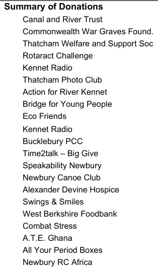 We support Local, National and International Charities and during the past Rotary Year (Jul 24 - Jun 25) we once again assisted TTC with providing marshals for their events and distributed over 700 Christmas Food Parcels. As a result of our community events fund raising we have managed to donate over £10,588, which has been distributed to the following organisations.