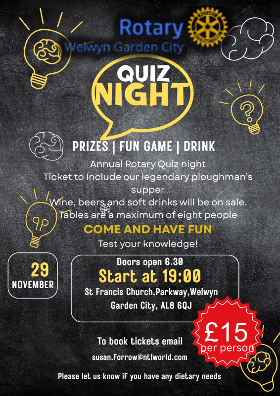 moreThe Youth Service Committee organises youth competition heats run by the club, currently Young Chef and Youth Speaks, and works with three other local clubs through Mid Herts Rotary to promote a wider range of youth activities.