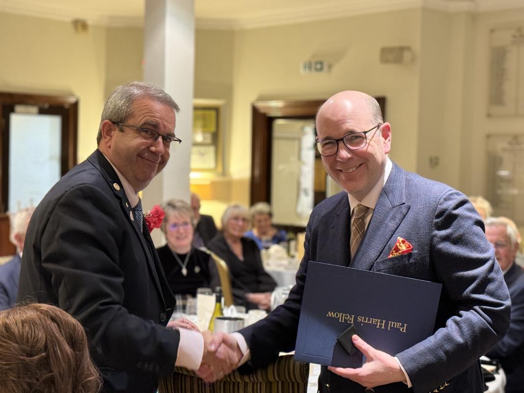 Warm congratulations to Bill Parsons, Chris and Jane Davies, and Trevor Morgan for their Paul Harris Fellow recognitions, and to Dragos Carnateanu, who received the Paul Harris Fellow award and the prestigious Rotarian of the Year recognition!