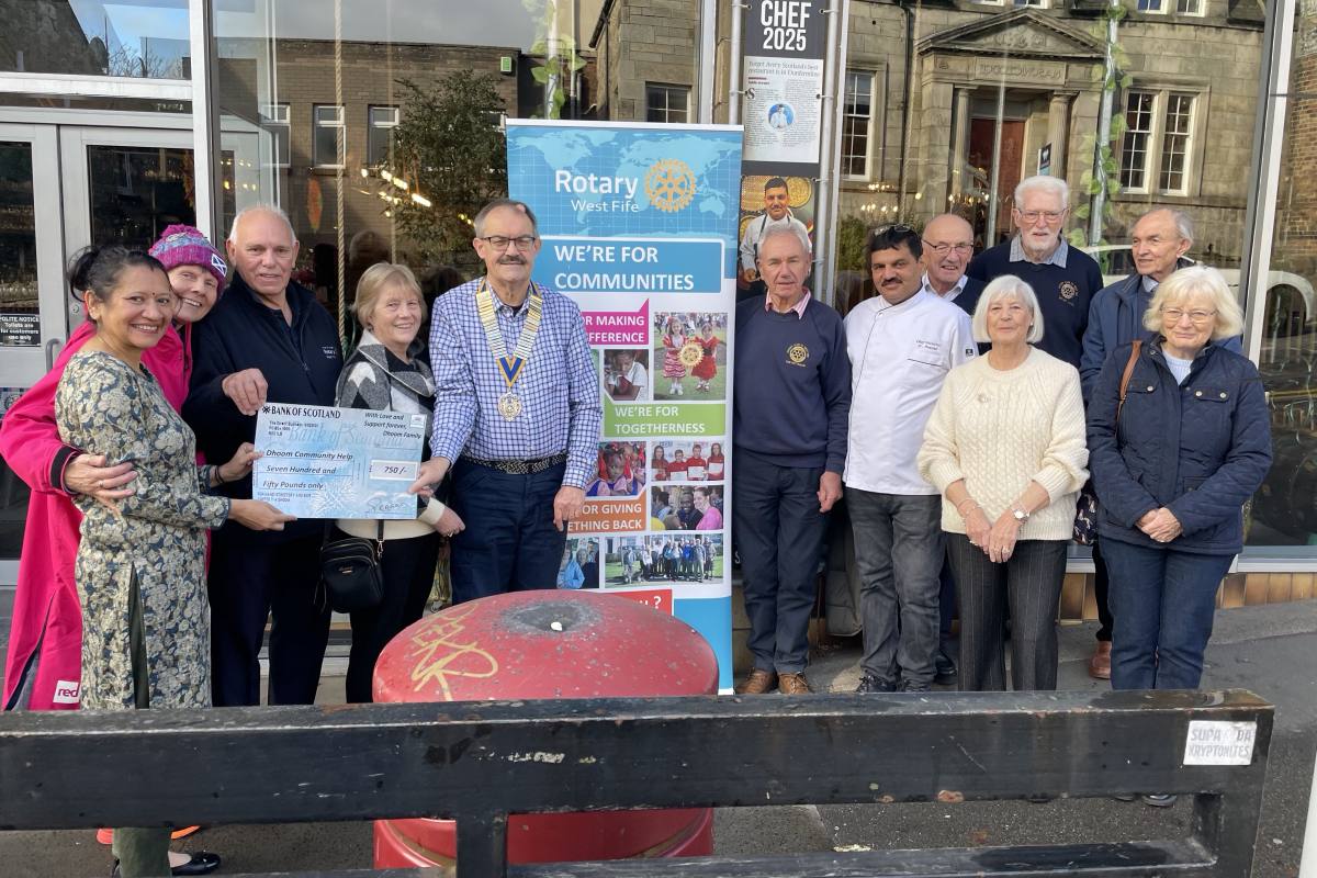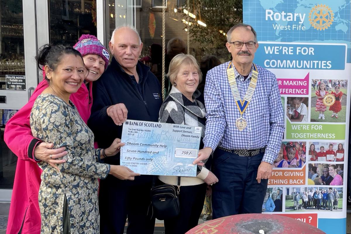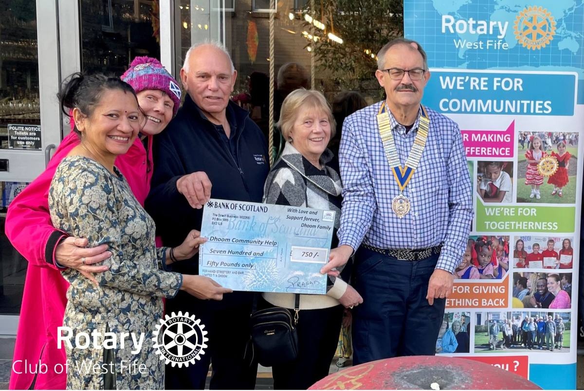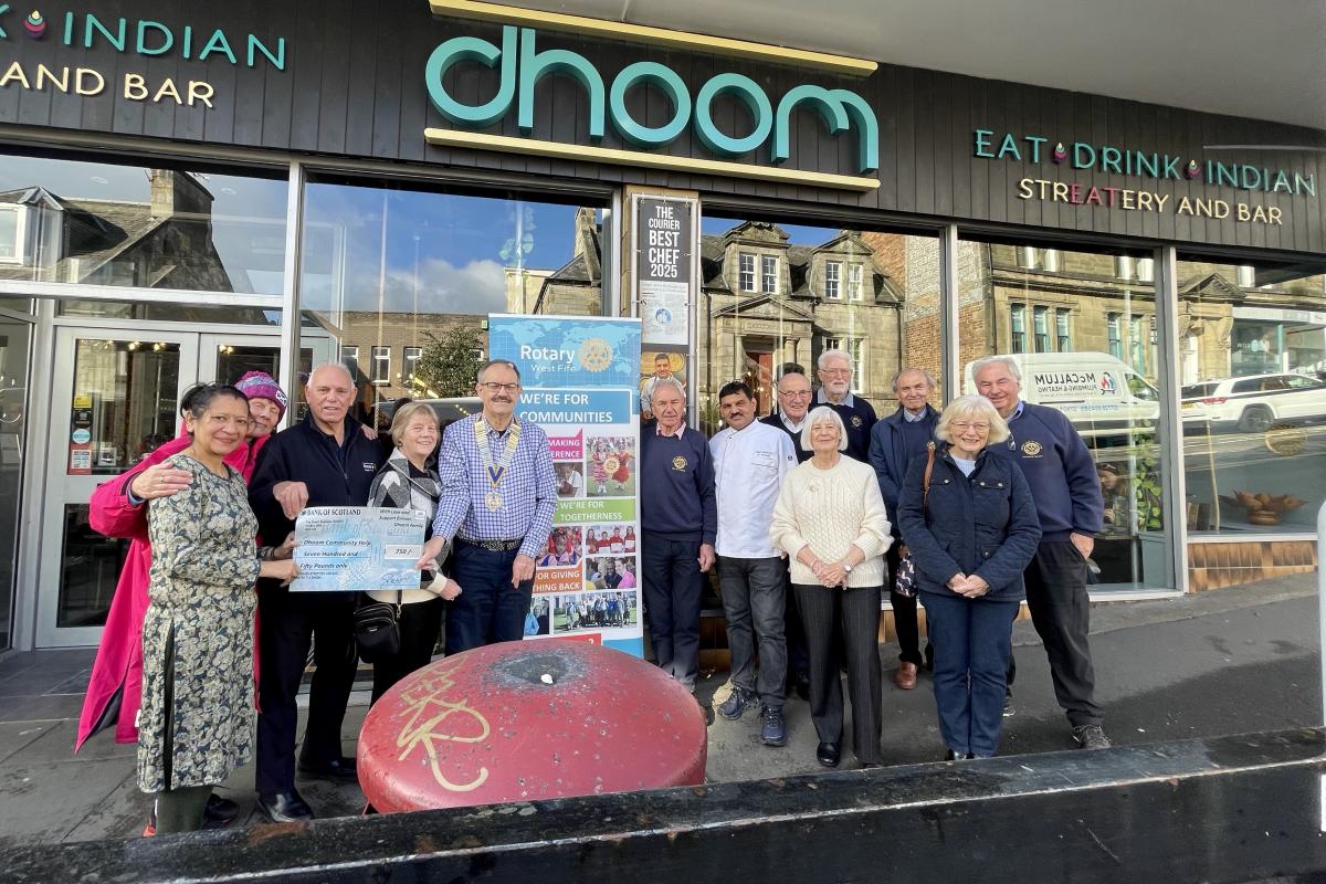 The West Fife Rotary Club Race Night received a major boost with £750 sponsorship from Dhoom Indian Restaurant in Dunfermline. The event held on 30th October at Dunfermline Golf Club raised over £1700 for Rotary and local charities.