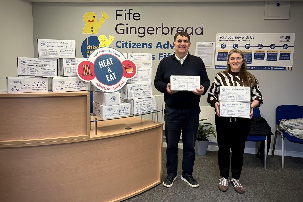 The club supported the Christmas Shoe Box appeal for Fife Gingerbread. Neil delivered the filled boxes to them in the first week of December and they were very pleased with this response, and from a peek inside the boxes very happy with the contents!