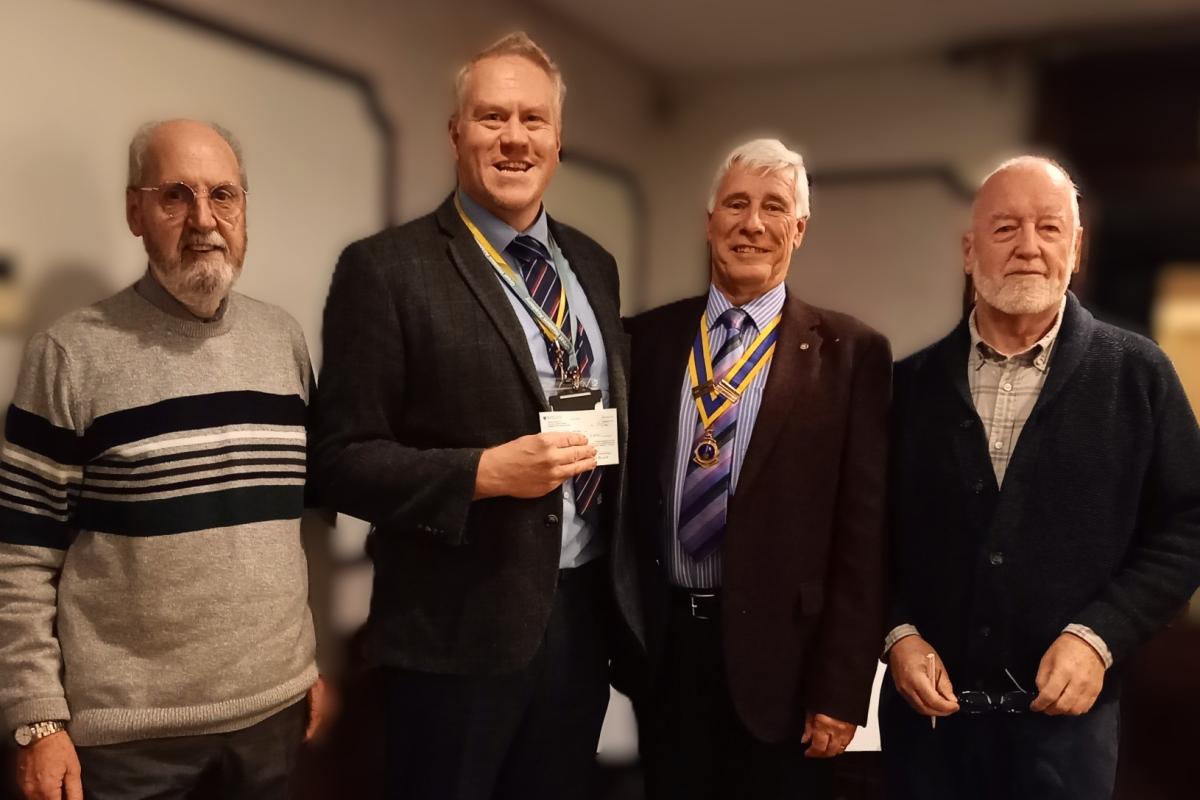 In the picture: President Mike Helyer and Rotarians Richard Goddard and Chris Ockwell present David Clarke with our cheque for £250.