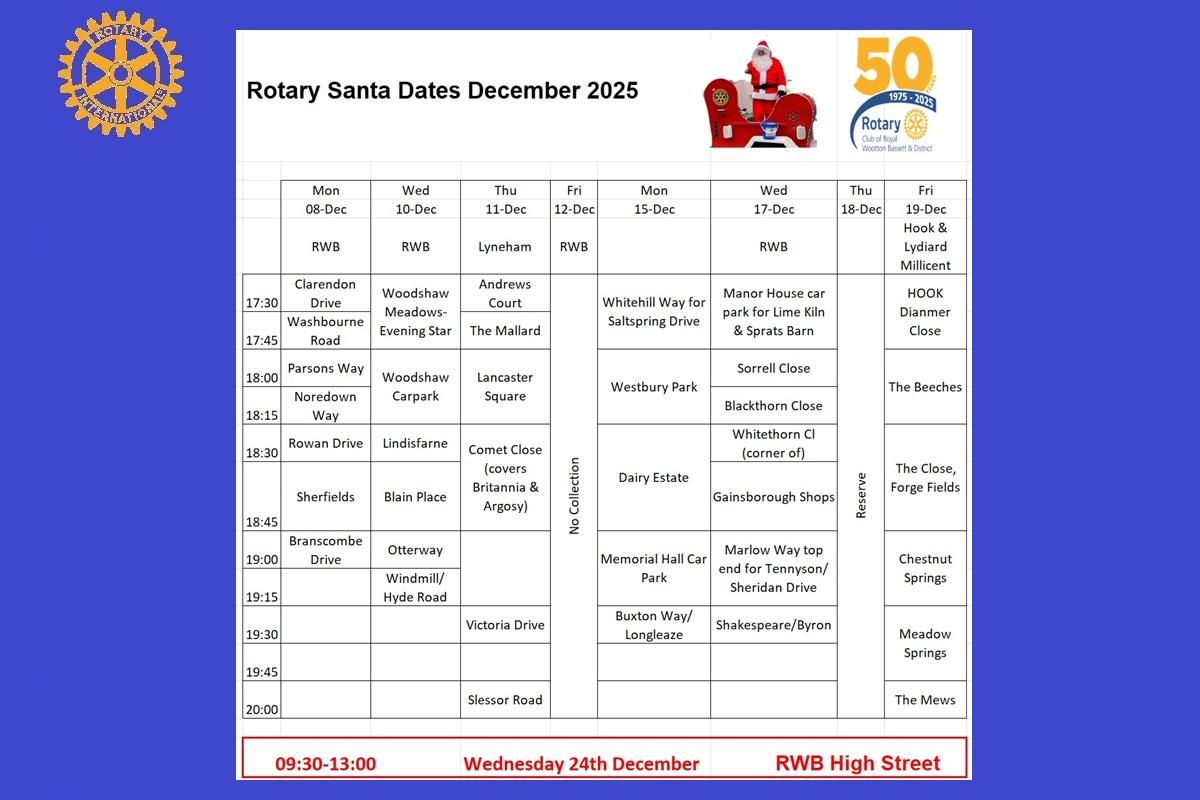 Up to date information about RWB Rotary Santa can be found on the Facebook page here
