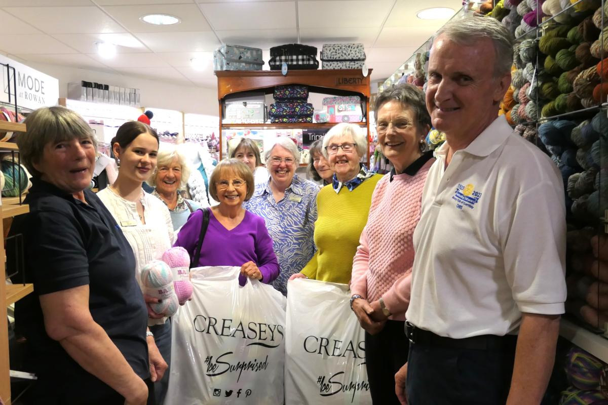 On Saturday this week Carla, Phil (Ball) and myself met with Kay Rawlins-Duquemin and some of the lovely ladies from the 'Newborn Baby Hats Appeal' (NBHA) at Creaseys Home Goods Store to hand over £250 worth of wool donated by the Rotary Club of Guernsey and to which Creasey’s also made a contribution.