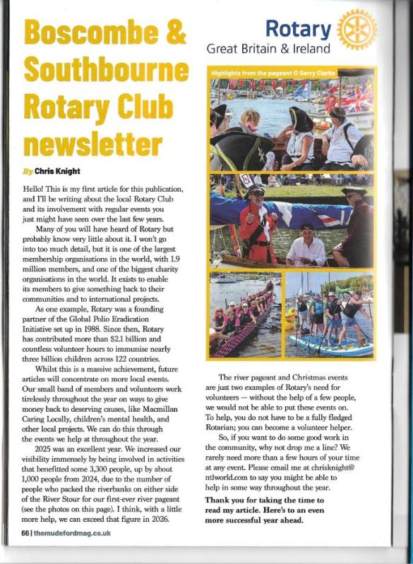 moreBoscombe & Southbourne in association with Christchurch Rotary are pleased to promote Christchurch River Pageant 2025 and DECLARED A COMPLETE SUCCESS RAISING OVER £2500