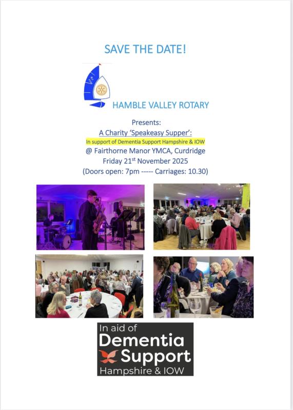 All proceeds from the evening will be donated to Dementia Support, Hampshire & IOW