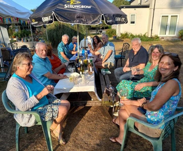 48 Rotarians and their friends and neighbours gathered  in the sunshine at President Ian Wheeler's garden to enjoy delicious homemade tea and cakes along with other drinks.  The event was supported by Tesco (Dibden store) who provided some of the refreshments along with Hythe & District Inner Wheel who are famous for their baking skills.
