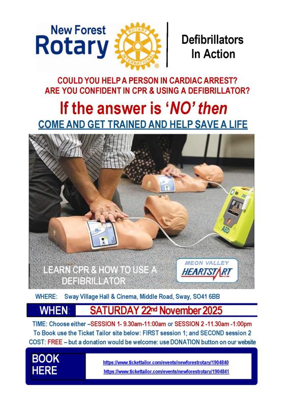 We may run further events subject to demand.New Forest Rotary collaborates with Meon Valley Heartstart.