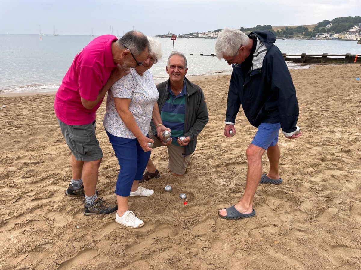 On a slightly cloudy but mild (and dry!) evening, members and friends of Swanage Rotary assembled on the beach to enjoy an evening of pétanque (boules).