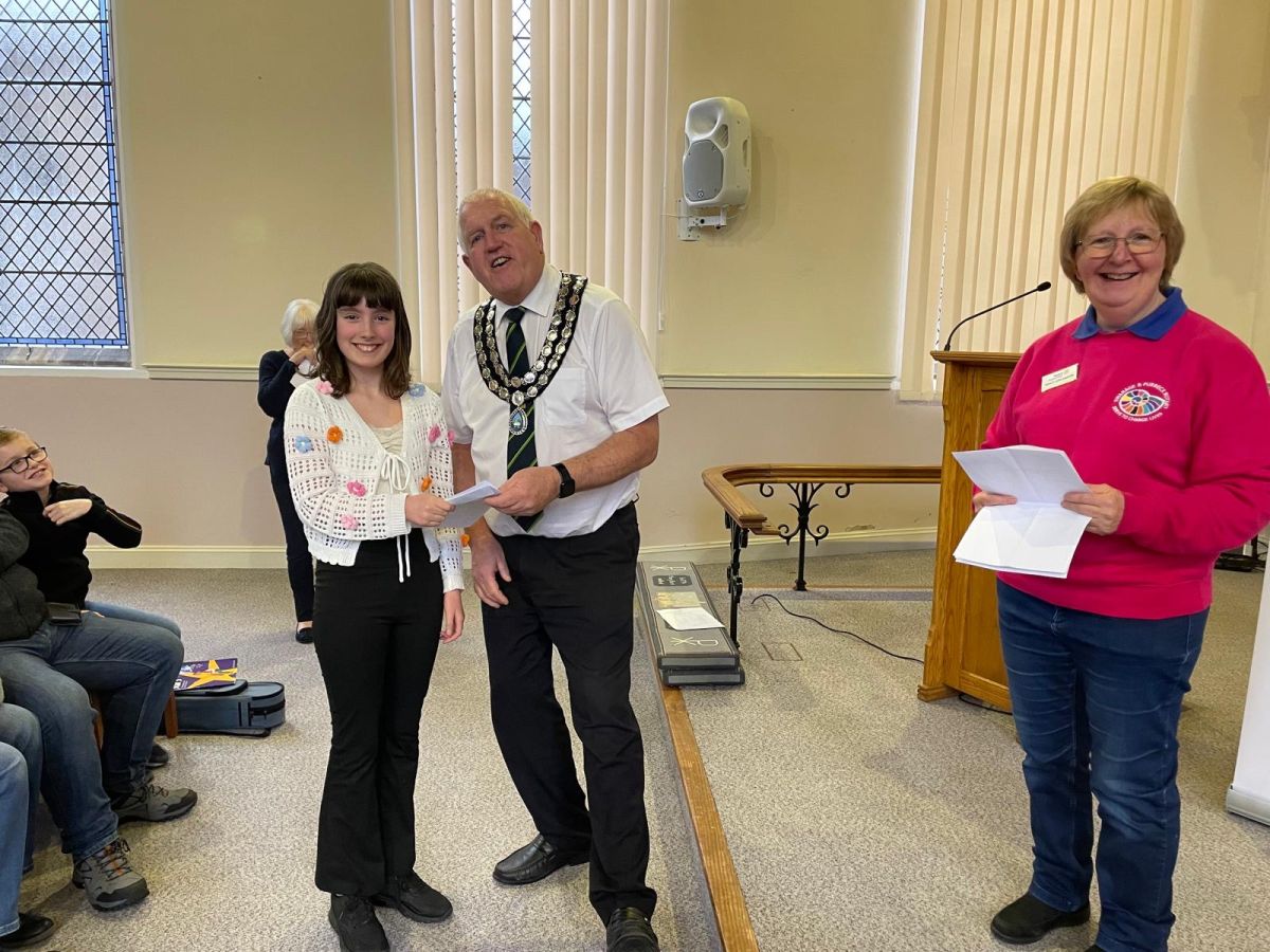 The overall winner this year was Maria Khrypkova, a pianist, pictured in the green top above receiving her prize from Swanage Town Mayor and Rotarian Mike Bonfield. Congratulations to Maria!