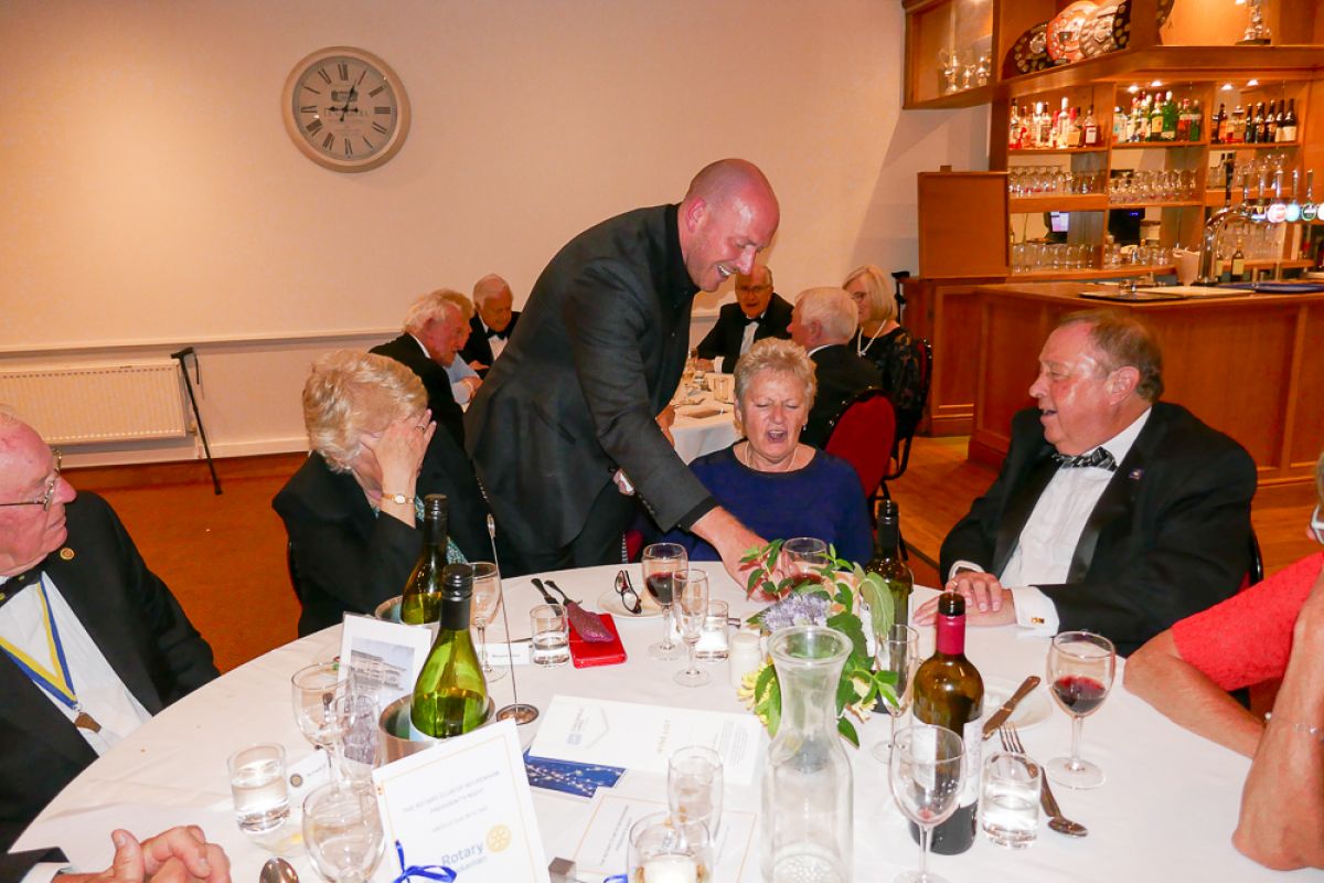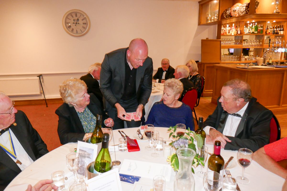 49 Rotarians from Beckenham with guests from Lewisham and Penge, and Langley Park enjoyed a very pleasant President's Night on Friday 16th May at the Chelsfield Lakes Golf Facility. Guests enjoyed a three course meal and were spellbound by the the table magic of Greg Williamson, a member of the Magic Circle.
