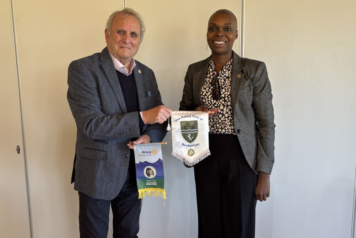 President Elect Chris and Rtn Patricia presented their respective club pennants to each other