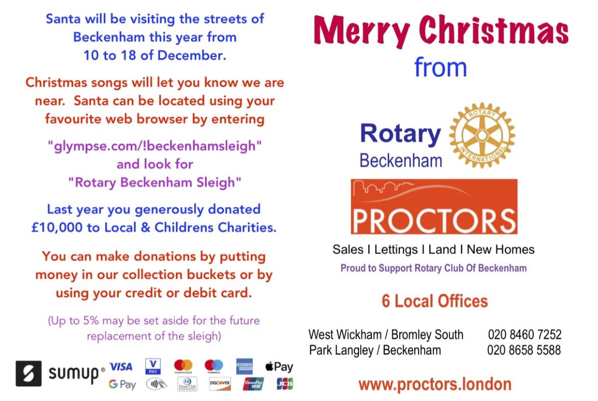 The link takes you to our new Christmas website which has the routes, dates and times of our Rotary Sleigh with Santa and his little helpers, plus the locations, dates and times of our store collections.