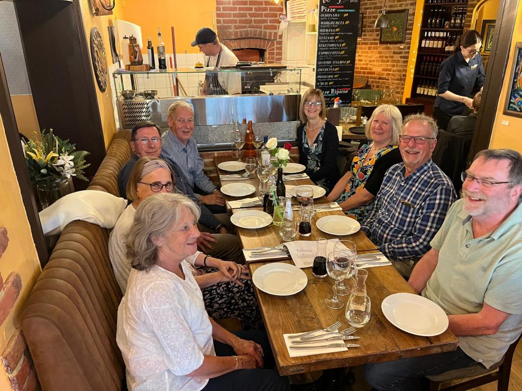 After pre-dinner drinks in the hotel we set off across Caterbury in a warm evening to the Posillipo Italian Restaurant for a delightful supper and a stroll back through the city, past the floodlight cathedral to the hotel.