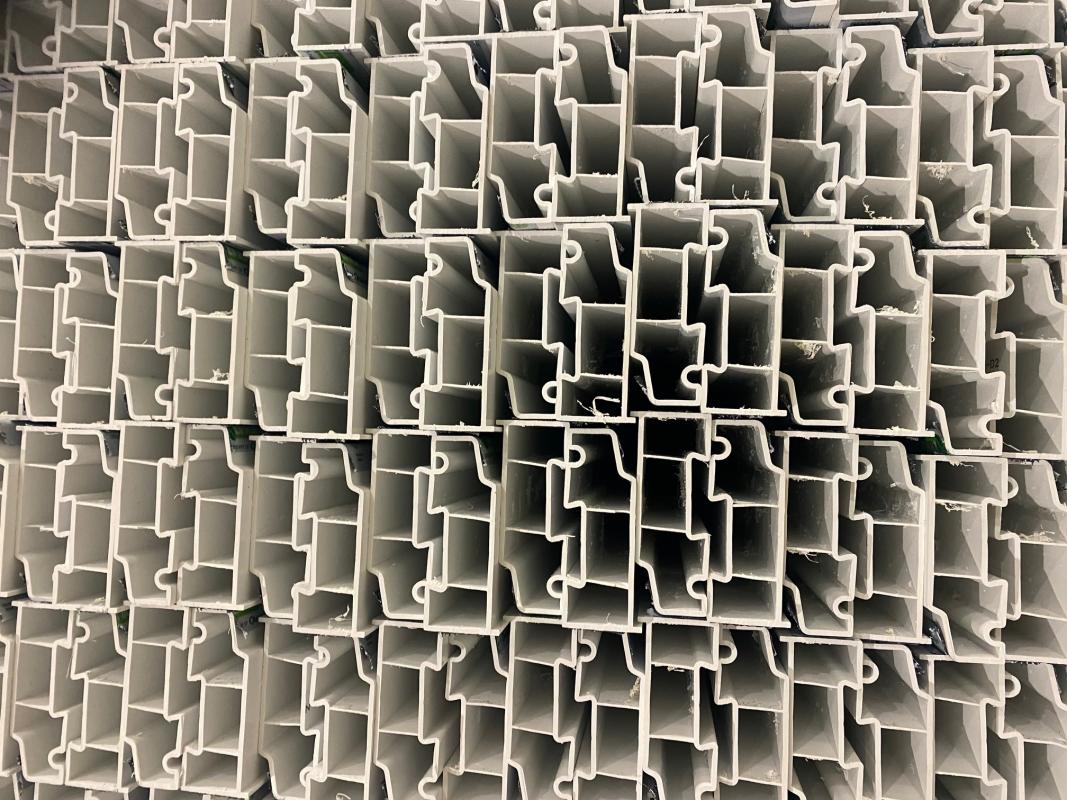 We started in the "goods in" store of the range of plastic extrusions used to form the frames and inserts of the windows. Paul explained that Whiteline had a market based in the south-east corner of England and were producing over 300 window units per week.