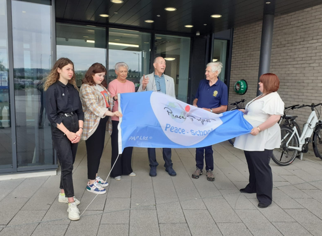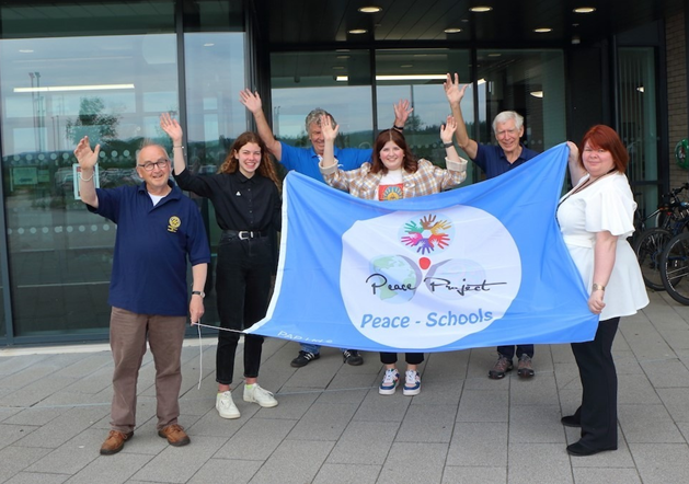 On 24 June 2021, Jean Best, Rotary International’s Global Network and United Nations Champion of Peace, presented high school pupils Georgia Johnstone and Beth Arnold, Peace Advocates of Dalbeattie High School, with the Rotary Blue Flag of Peace. In so doing, Dalbeattie High School became only the second school in Scotland to be awarded the Rotary Blue Flag of Peace. Raised by Georgia and Beth, the flag now flies at the entrance to Dalbeattie Learning Centre.