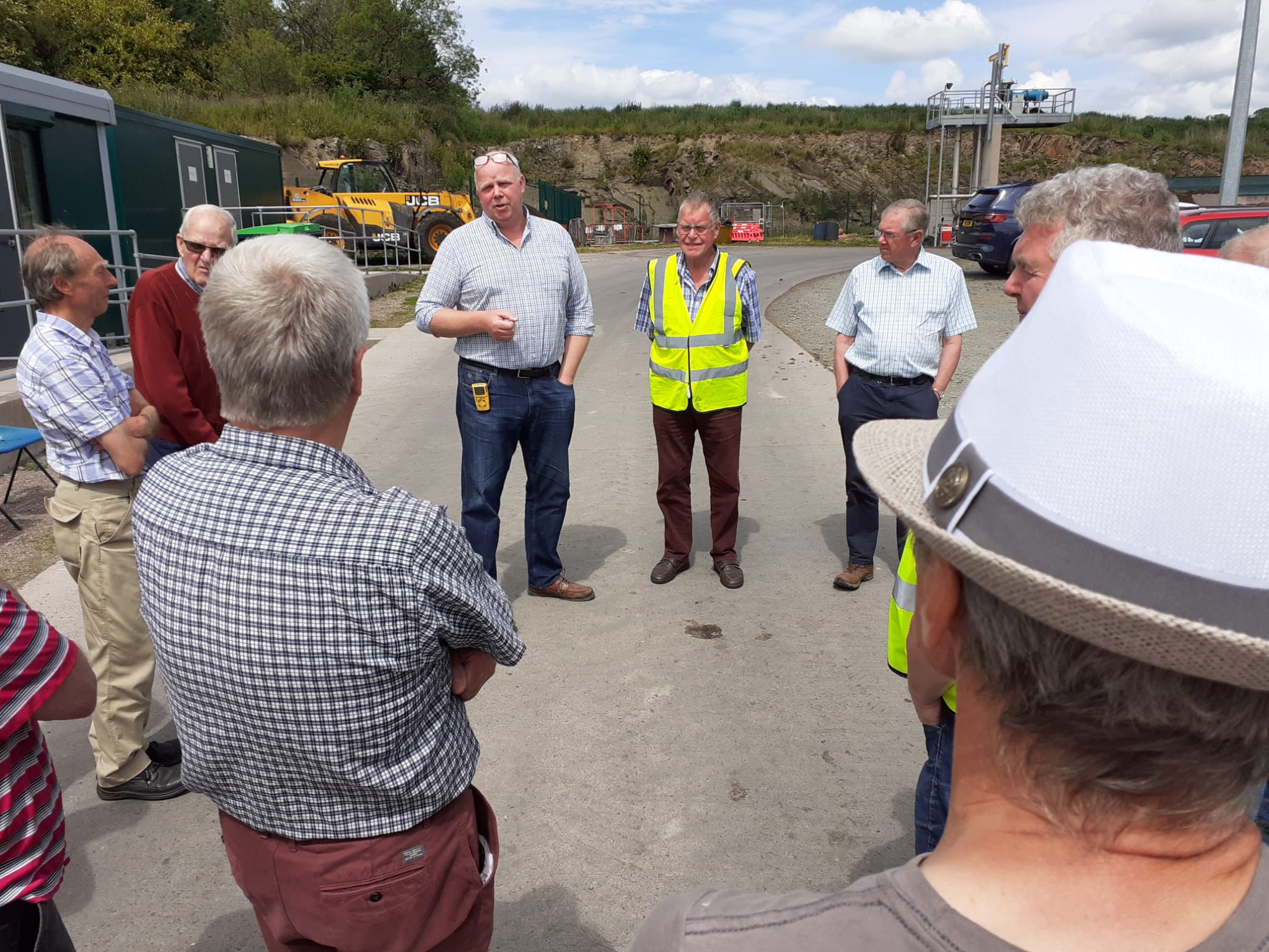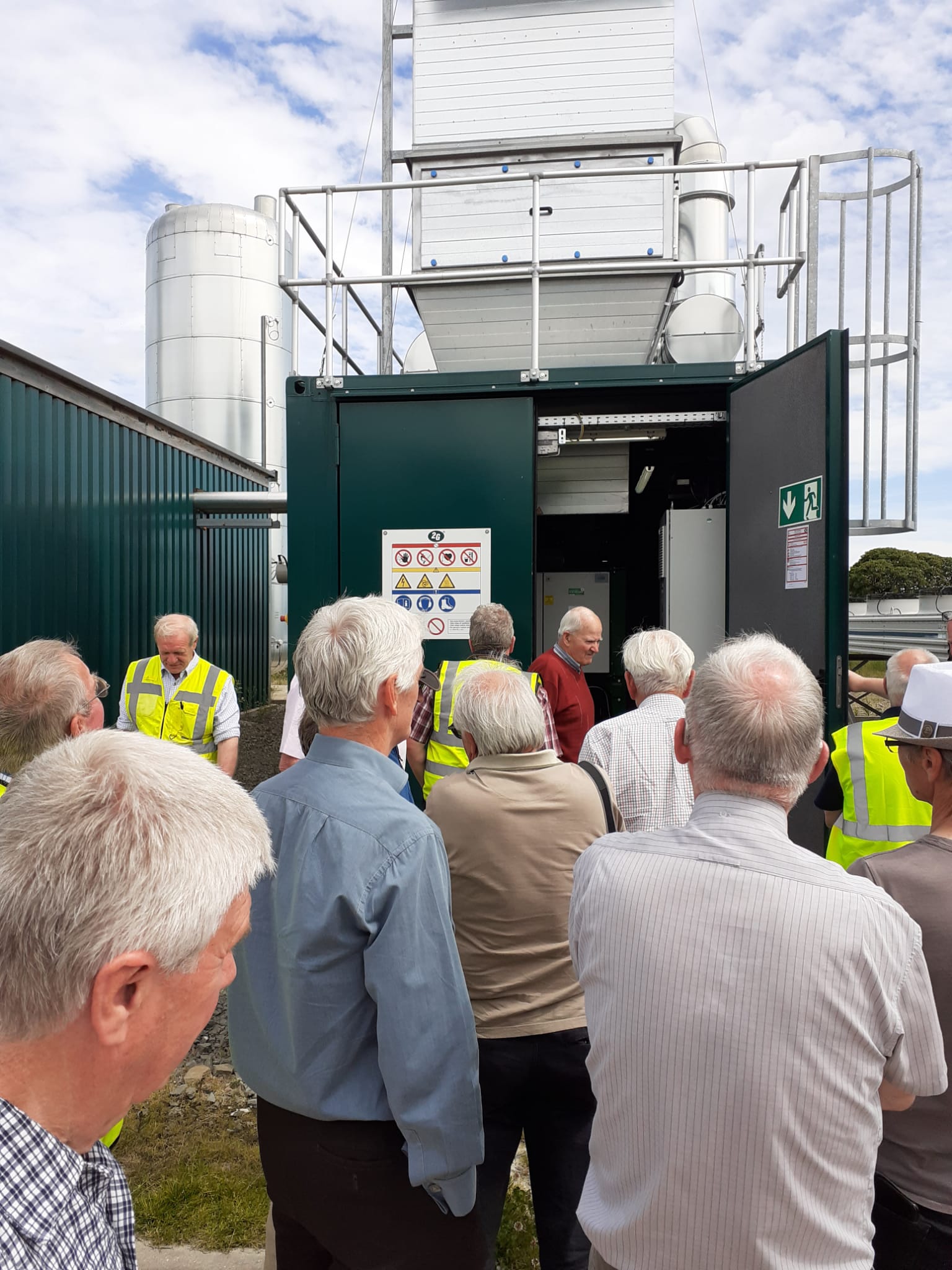 Dalbeattie and Castle Douglas Rotarians made a joint visit to the Biogas Plant at Crofthead Farm, Haugh of Urr, on Wednesday 15 June 2022, being shown round the facility by Mark Callander, who farms at Crofthead. Utilising animal manure, Methane and Carbon Dioxide gases are separated on site, with gas fed into the national grid and Carbon Dioxide dry ice blocks and pellets produced. The end by product of the operation is compost. Nothing wasted!