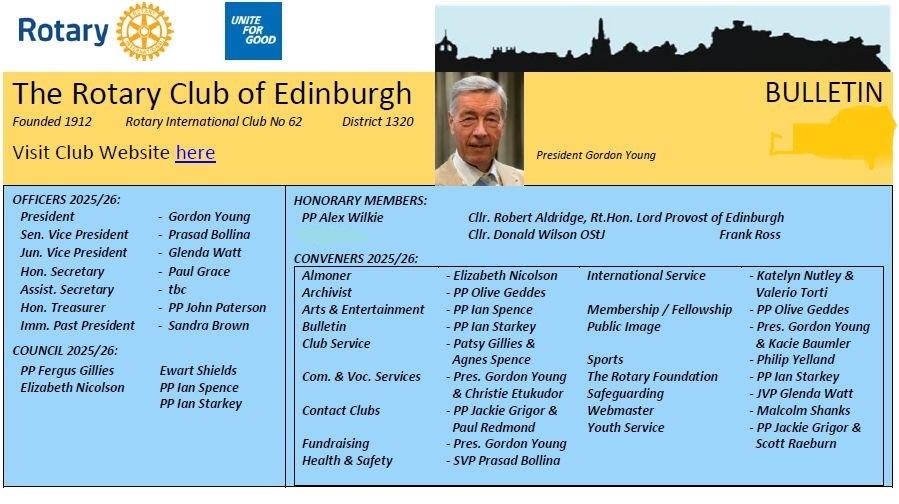 more Rotary Club of Edinburgh Monthly Club Bulletins