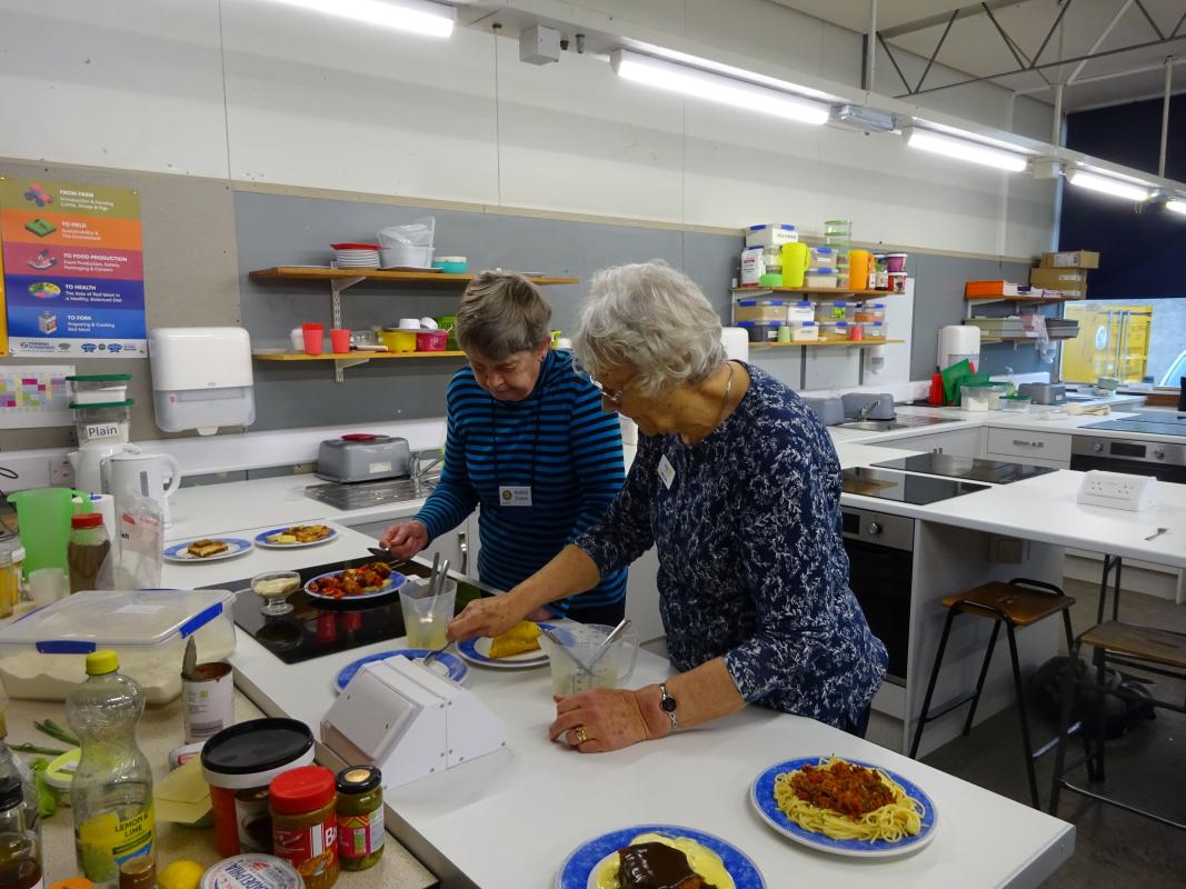 Photo shows judges Mairhi and Judy tasting one of fourteen two-course entries for the competition.