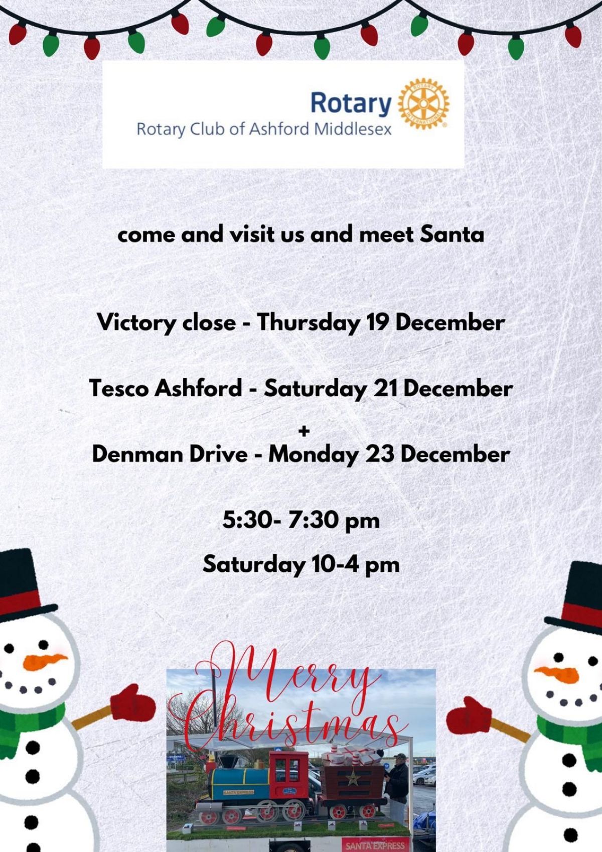 We are so very grateful to the people of Ashford and Stanwell who donated so generously to our collections. The monies raised will go towards helping our local Charities and other local communal needs throughout the coming year. We do hope that next year we will be able to be back with our normal programme and fully operational Christmas Float and that Santa will be able to visit our usual Ashford and Stanwell areas.