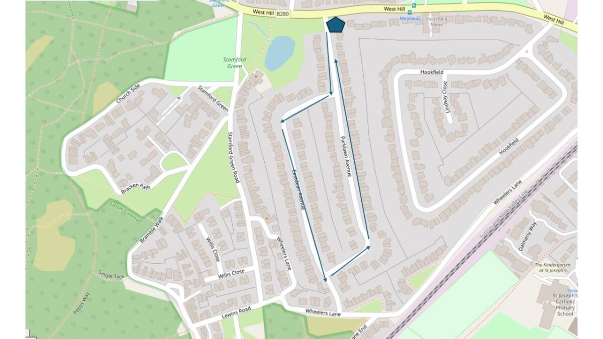 Click here for the Parklawn Avenue Route What3Words starting place is ///dress.spun.woes