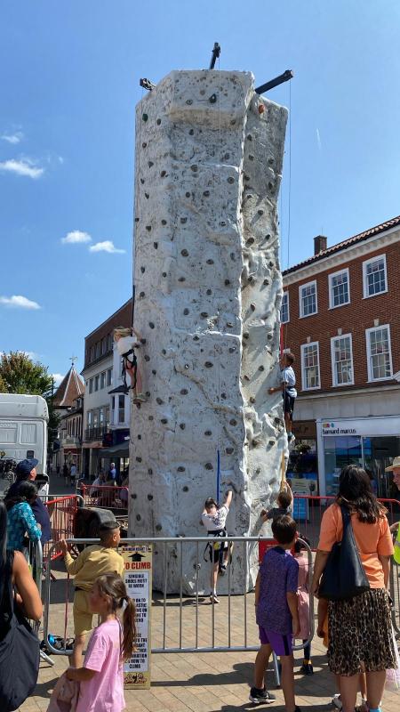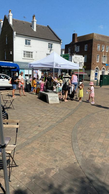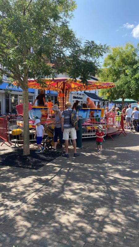 Great again to be part of these ongoing Family Friday events held at the heart of Epsom Town, organised again by GO EPSOM/BID for the enjoyment of all families in, around and visiting Epsom. The fun again started at 12 noon with the exception of a slight delay this week in observing the 2 minute silence for VJ Day. Last week was extremely busy whilst children and families enjoyed wall climbing, crazy golf, the teacup ride, Punch & Judy Shows, with arts n crafts by the Ashley Centre and Epsom Rotary.