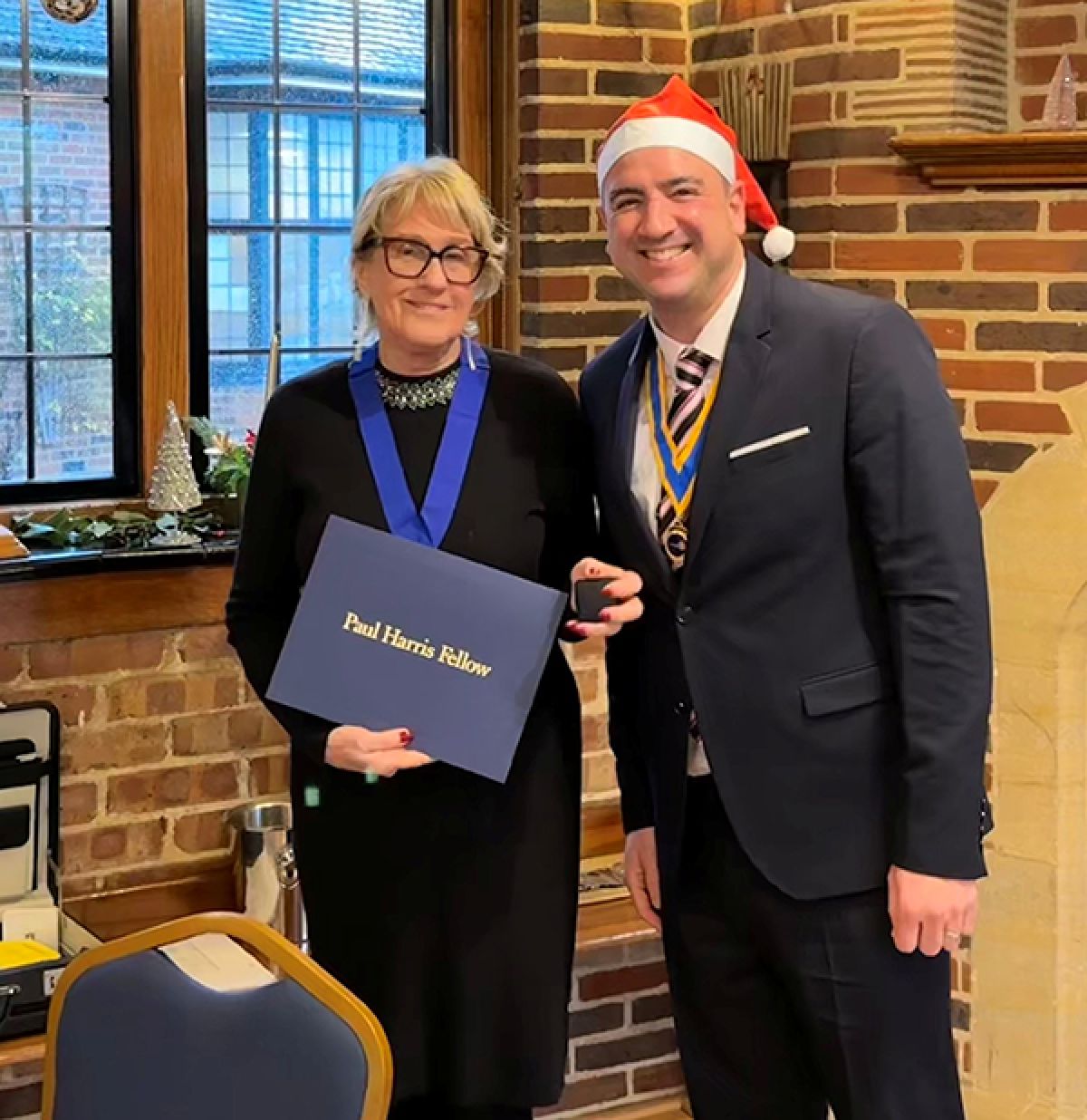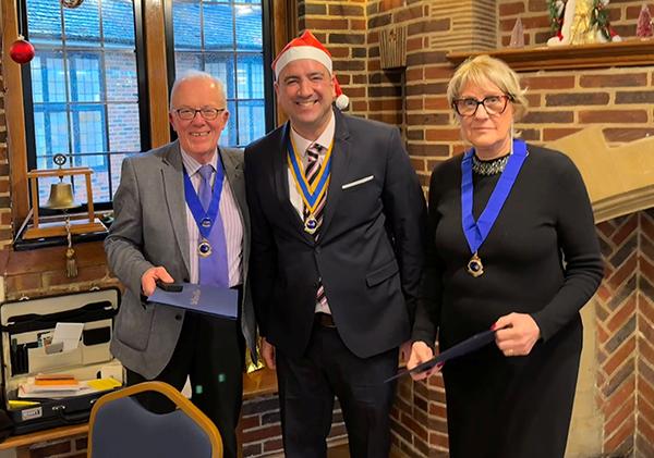 President Joe Proops updated us on what the club had achieved this Christmas and then announced that Carol Caiger and Jim Munns were being honoured! They were both being awarded Paul Harris Fellowships.