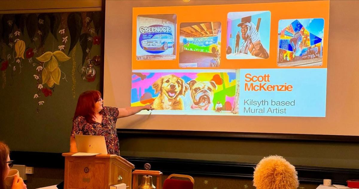 Business - Lindsay Smith & artist Scott, Kilsyth Academy Library Mural