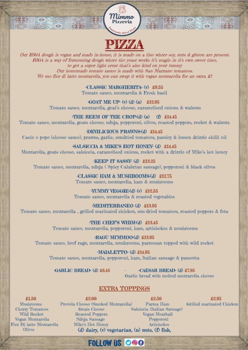 Please see the pizza menu below for more details of the pizza options.