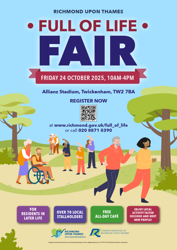 The annual Full of Life Fair is organised by Richmond Carers Centre and each stall is manned by volunteers representing different aspects of health, care and public services, community and voluntary organisations, national charities and local businesses, eager to give local residents a taste of what they can provide and how to get involved. This year, as in previous years, there was also a full schedule of fun activity taster sessions and workshops to support physical and mental health and wellbeing.