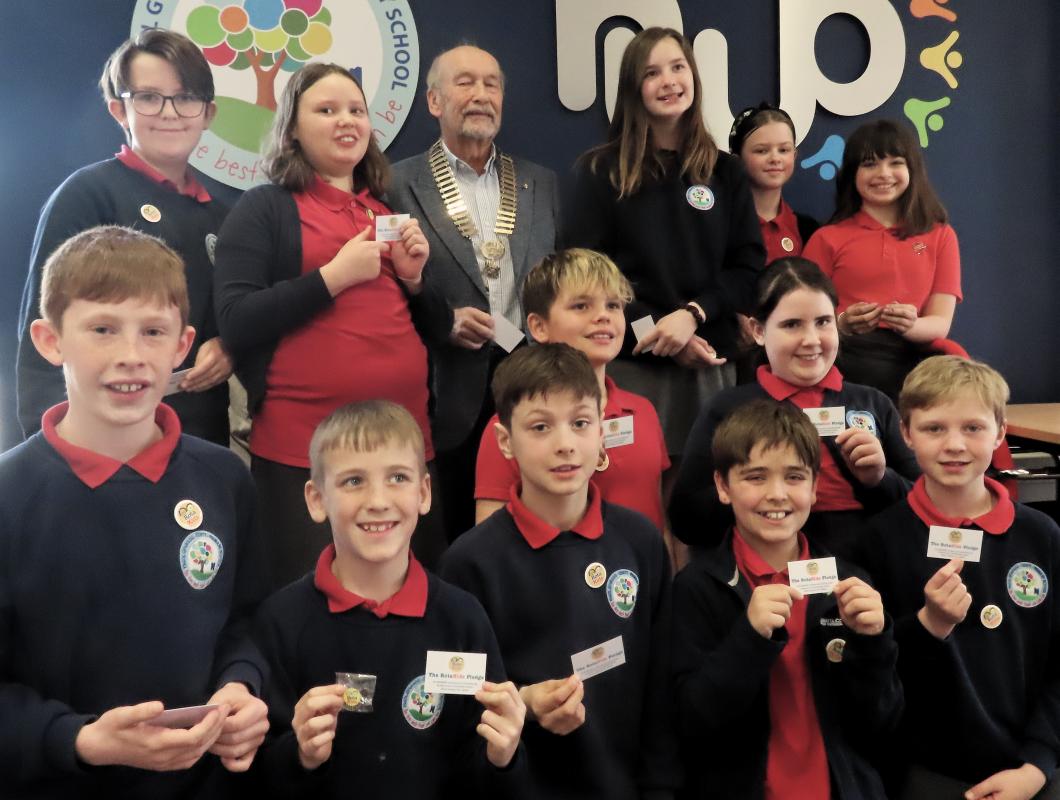 Acting President David Hubbard gave a short talk about Rotary and badges were handed out to the officers and all the members of the team. He also handed out the Pledge and read it out with the RotaKids.