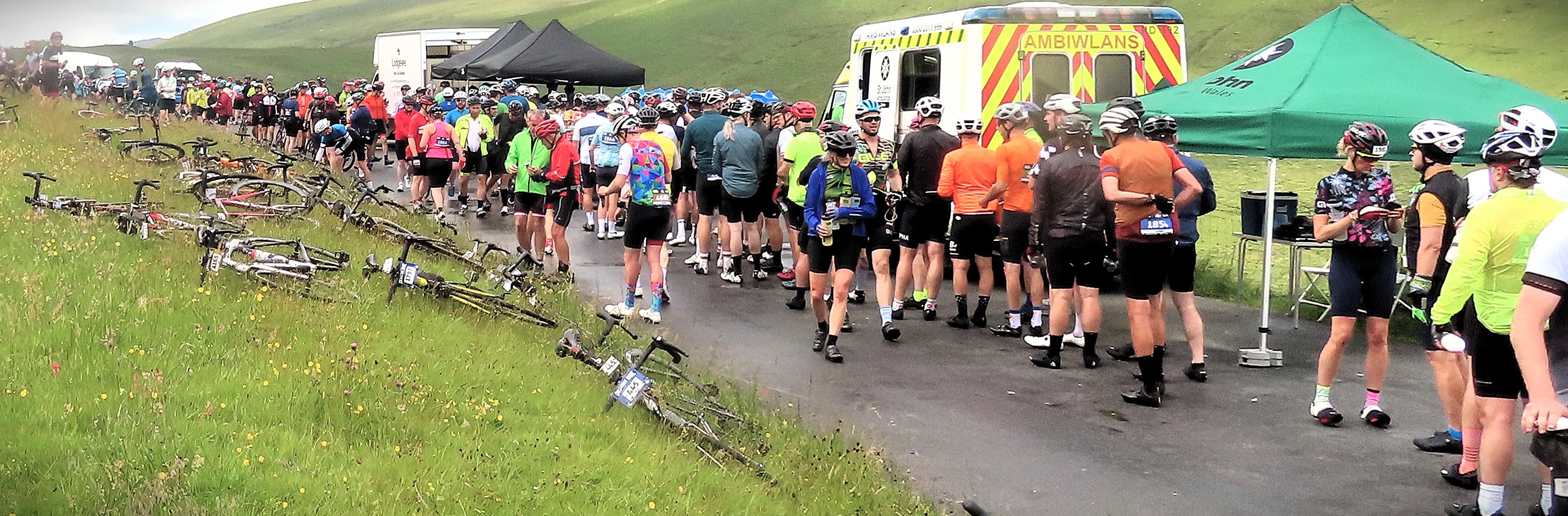 Members of Rotary Bridgend, with family and friends, once again manned a feed station for the annual Dragon Ride over the Brecon Beacons, this year above Crai resevioir.