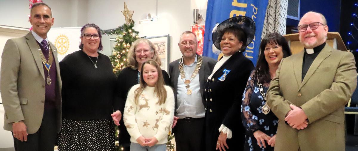 Pictured above are President Paul with David Morris (President of Rotary Cowbridge), Sarah Jones (Ceo of Y Bont), Judith Shawe, Evelyn (President of RotaKids, Coety School), Sharon Dixon (High Sheriff of Mid Glamorgan), Sue Newton (President of Bridgend Soroptimists) and Revd. Richard Pitman. Our guests, along with some of our members, kindly read the lessons.