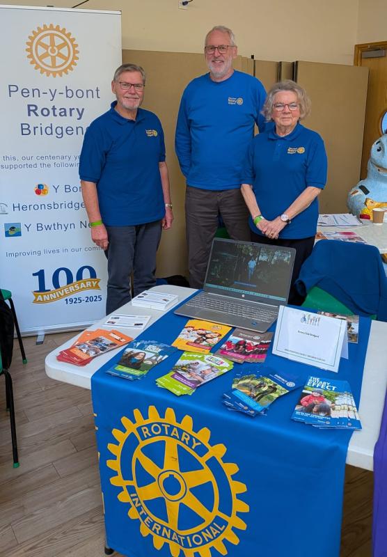 Our stand included information about Rotary and membership options for Rotary Bridgend. We also showed the video of our three Centenary Projects - Heronsbridge School, Y Bont and Y Bwthyn Newydd.