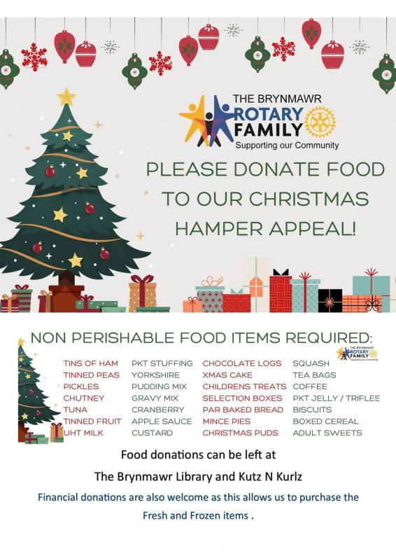 As the festive season approached, Brynmawr Rotary once again spread holiday cheer through its annual Christmas Hampers initiative. With the help of generous donations and community support, we ensured that families in need received a little extra comfort and joy last Christmas.
